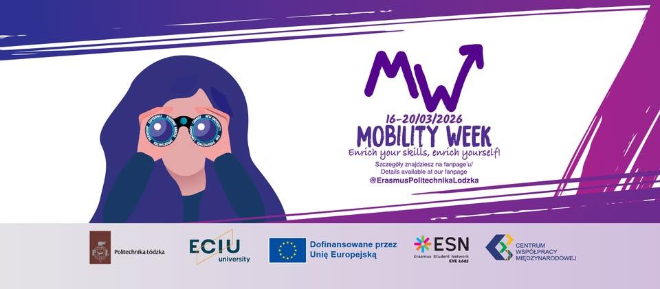 W tym roku akademickim w dniach 16-20 marca 2026 r. odbędzie się na Politechnice Łódzkiej kolejna edycja flagowego wydarzenia! ERASMUS+ MOBILITY WEEK.